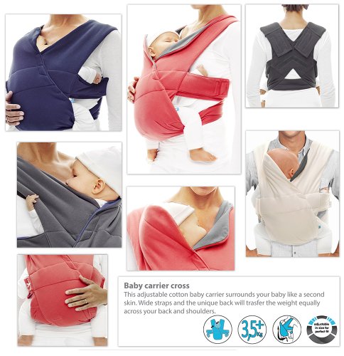 Wallaboo Cross Babydrager, elastisch comfort. Dragen in een anatomisch correcte gespreide houding.