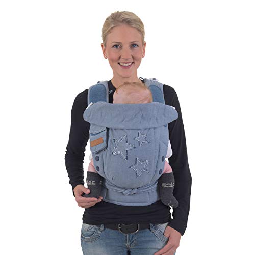 Specification: Bondolino babydrager inclusief bindhandleiding, slim fit denim & ster